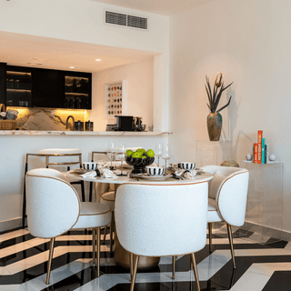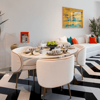 Popsicle Round Dining Table - Modern Elegance in Calcutta Gold Marble